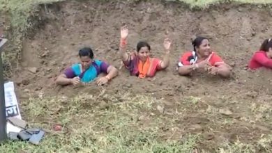 मराठा आरक्षणासाठी बीडच्या वासनवाडीत महिलांनी घेतलं स्वतःला गाडून