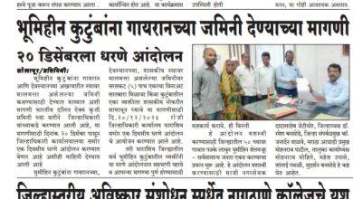 २० डिसेंबरला धरणे आंदोलन भूमिहीन कुटुंबांना गायरानच्या जमिनी देण्याच्या मागणी.