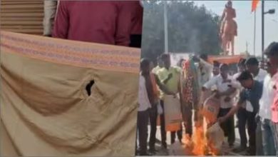अंत्योदय लाभार्थींची क्रूर थट्टा.. फाटक्या टाकाऊ साड्या आणि देशाचा अपमान करणाऱ्या पिशव्यांची संतप्त नागरिकांकडून होळी .