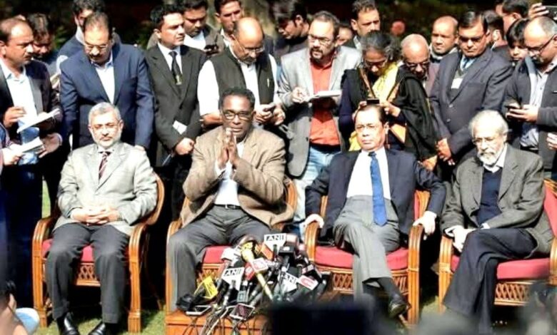 न्यायमूर्ती जे. चेलमेश्वर , रंजन गोगोई , मदन बी. लोकूर , कुरीयन जोसेफ , पत्रपरिषद घेतांना